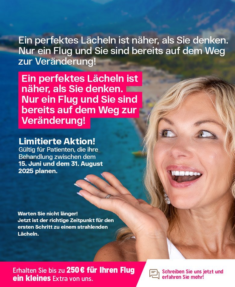 Ich habe in Deutschland immer wieder Probleme mit einem Zahnimplantat gehabt, bis ich nach Antalya zu Dr. Sena kam. Schon beim ersten Gespräch wusste ich: Hier bin ich richtig. Die Technologie ist auf Top-Niveau, das Personal extrem aufmerksam. Besonders Frau Tulay hat sich persönlich um alles gekümmert sowas erlebt man selten! Nach dem Eingriff hatte ich null Schmerzen. Ich konnte wieder normal essen und lachen das war für mich unbezahlbar. Danke, dass ihr mir Lebensqualität zurückgegeben habt!