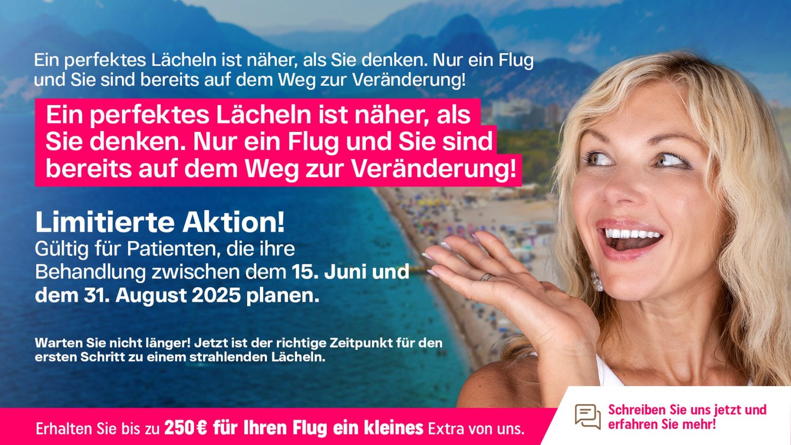 Ich habe jahrelang davon geträumt. Davon, einfach ehrlich und ohne Scham lächeln zu können ohne die Hand vor den Mund zu halten, ohne mich für meine Zähne zu verstecken. Ich hatte vergessen, wie es sich anfühlt, richtig zu kauen und das Essen zu genießen. Und dann habe ich mich endlich getraut und es war eine der besten Entscheidungen meines Lebens. Schon beim ersten Besuch wusste ich: Hier bin ich richtig. Ich wurde von Anna empfangen so eine herzliche, aufmerksame und offene Person! Sie hat mich von Anfang an begleitet, alles erklärt, jede meiner Sorgen ernst genommen und mir Mut gemacht. Ihre Unterstützung hat mir unglaublich geholfen. Die Implantation selbst wurde von Dr. Sena durchgeführt eine wahre Meisterin ihres Fachs. Sie arbeitete so ruhig, schnell und präzise, dass ich kaum glauben konnte, wie angenehm der Eingriff war. Keine Schmerzen, keine Angst nur Erleichterung und Dankbarkeit. Den letzten, ästhetischen Feinschliff bekam ich dann von Dr. Asli, die sich um die Kronen kümmerte. Was sie geschaffen hat, ist einfach wunderschön. Alles sieht so natürlich und harmonisch aus ich kann kaum glauben, dass dieses Lächeln jetzt wirklich meins ist. Insgesamt hat die ganze Behandlung rund 7000 Euro gekostet und das ist ein mehr als fairer Preis für diese Qualität, diesen Service und diese Fürsorge. Ich habe nicht nur neue Zähne bekommen ich habe ein neues Lebensgefühl gewonnen. Danke von Herzen an das gesamte Team. Ihr habt mein Leben verändert!!!