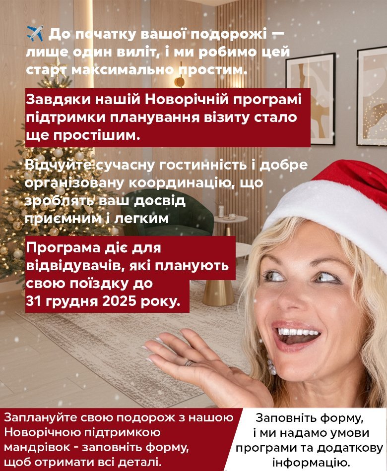 Ми допомагаємо зробити вашу поїздку чіткою й передбачуваною: від першого контакту до повернення додому кожен етап погоджений заздалегідь. Ви насолоджуєтеся спокійним і комфортним шляхом без зайвих хвилювань.